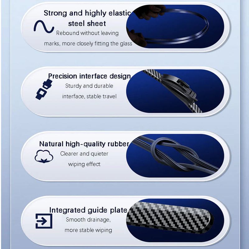 Verabschieden Sie sich von herkömmlichen Scheibenwischern und genießen Sie eine kraftvolle, dynamische und extrem sanfte Fahrt mit unseren innovativen Scheibenwischern. Die Kombination aus fortschrittlicher Leistung und elegantem Design garantiert ein völlig neues Fahrerlebnis – bei Regen und Sonnenschein.